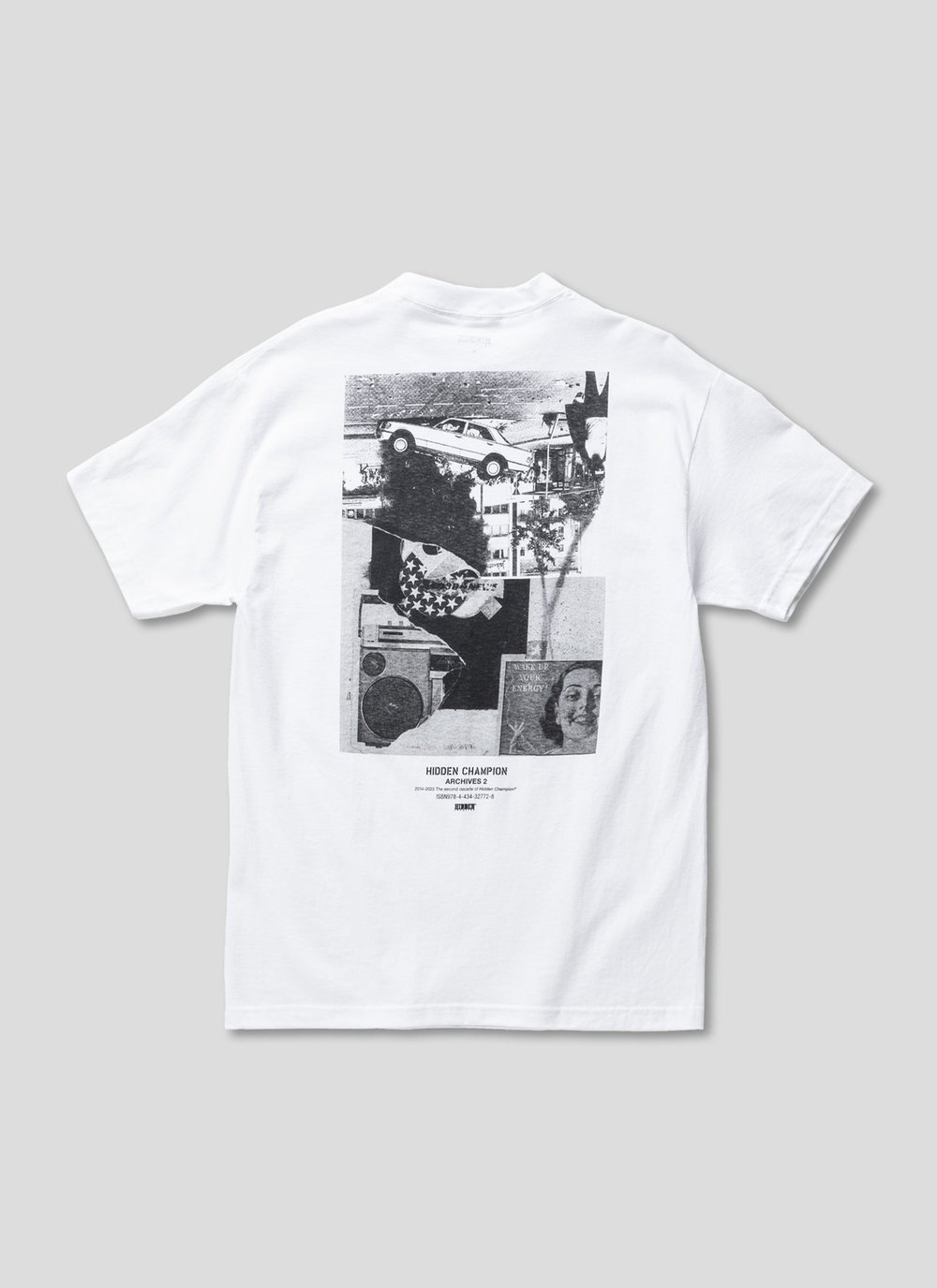 To celebrate the release of Hidden Champions ARCHIVES 2 Book, this T-shirt features the cover design by graphic artist MAROK on the back print. The front also features a printed Hidden Champion tag by MAROK. It is available in two colors, white and black. more info on hiddenchampion.jp