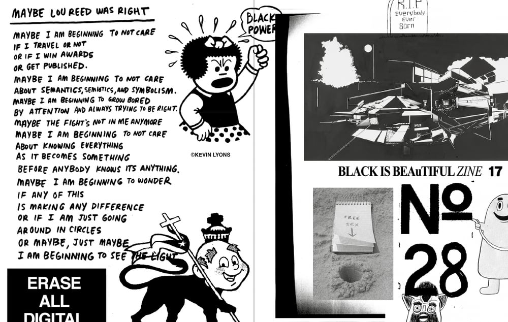 The LODOWN 25 − 10 SCRAPBOOK includes artwork, features, scribbles and thoughts by James Jarvis, Kevin Lyons, Actress, Jason Lee Perry, Thomas von Wittich, Zeger Reyes, Pep Kim, Daniel Josefson, Andrew Jeffrey Wight, Wes Lang, Illstudio, Daniel Weissbach, Machinedrum, Arcangelo Sassolino and many others.