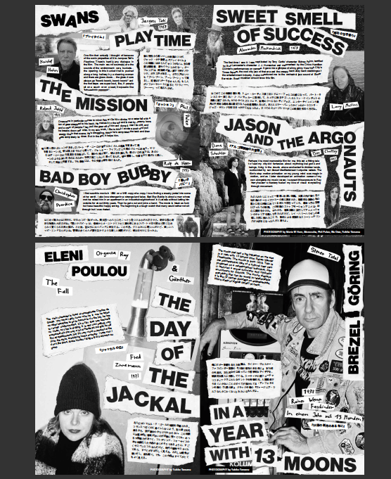 This issue includes contributions from German artists like Isolation Berlin and Nils Keppel, who are currently making waves, as well as international artists like Nick Zinner from Yeah Yeah Yeahs, The Lemon Twigs and Swans. Rather than typical movie reviews, this issue explores films through the lens of these artists, offering fresh discoveries about both film and music. You will encounter your favorite films, artists and music from various perspectives. We've created an issue that will resonate with both movie and music lovers. The cover artwork is a collage based on a scene from Klaus Maeck's film Decoder.